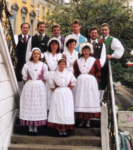 Die Brückenberger Trachtengruppe wurde 1953 von heimatvertriebenen Schlesiern in Bonn gegründet. Die Trachten wurden zum Teil noch aus Brückenberg im Riesengebirge mitgebracht. Die von uns öffentlich getragenen Trachten sind nach dem Vorbild der mitgebrachten Trachen hergestellt. Die Trachten der Frauen sind Festtagstrachten. Deren Schürzen sind mit schlesischen Weißstickereien verziert, die größtenteils handgefertigt sind. Die Trachten der Männer wurden im 19ten Jahrhundert von fränkischen Siedler nach Schlesien mitgebracht und von den Schlesiern übernommen. |